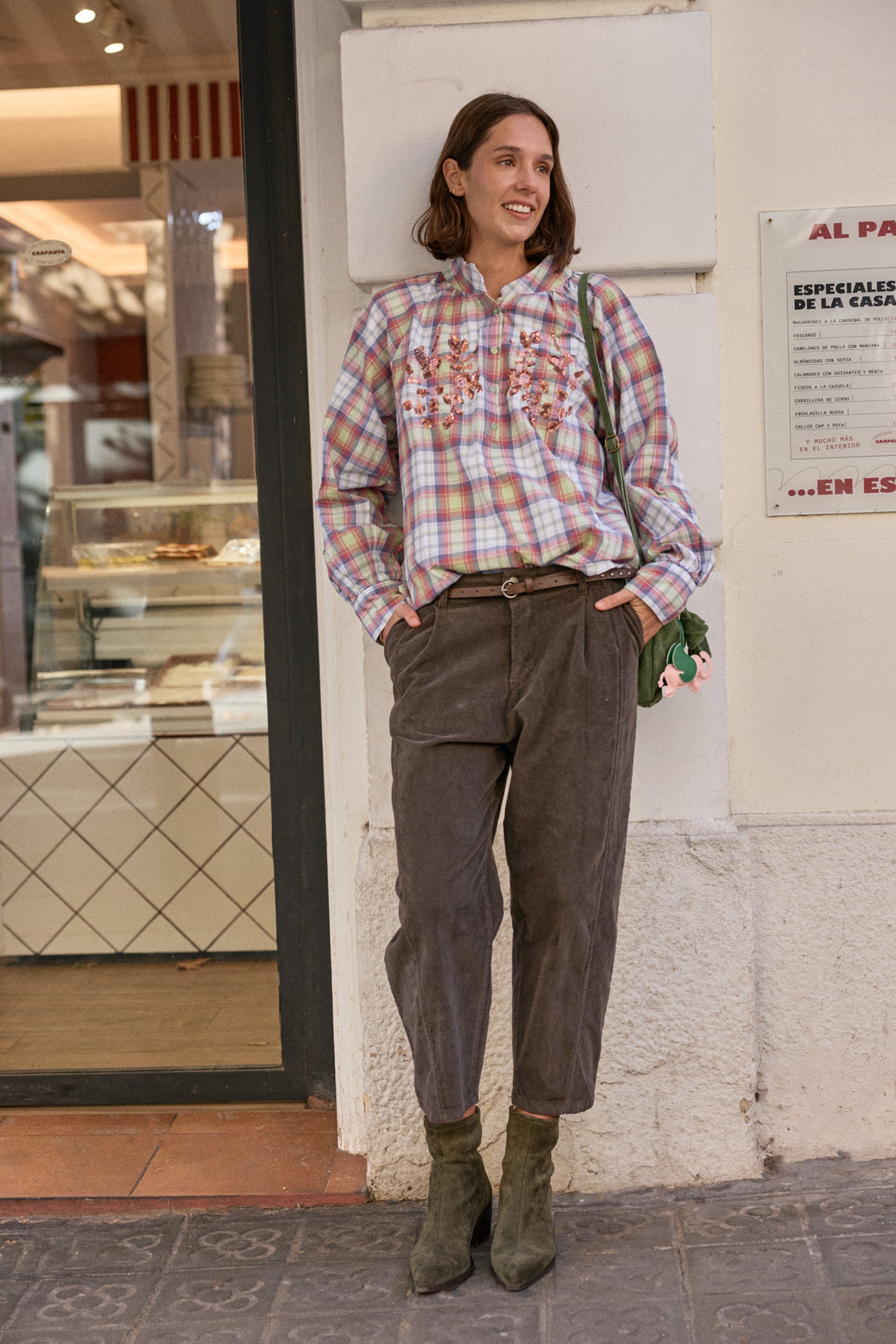 Camisa con bordado de lentejuelas. Talla única que se adapta de la 36 a la 42. COMPOSICIÓN Y CUIDADO Material principal: 100% algodón. Consejo de cuidado: se recomienda lavado a máquina a 30°.