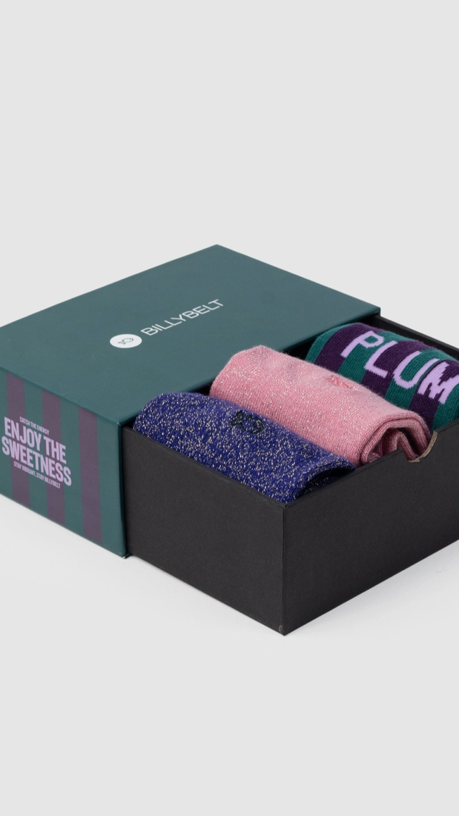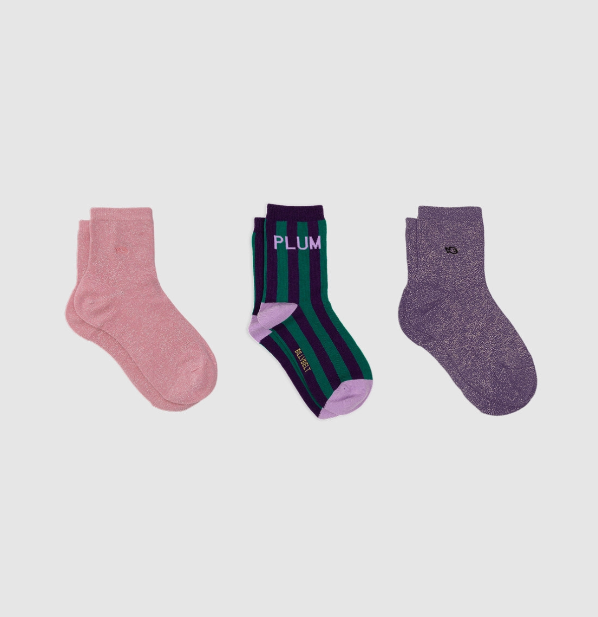 Estuche compuesto por 3 pares de calcetines para mujer tonos púrpura. Perfecto para una idea de regalo de Navidad