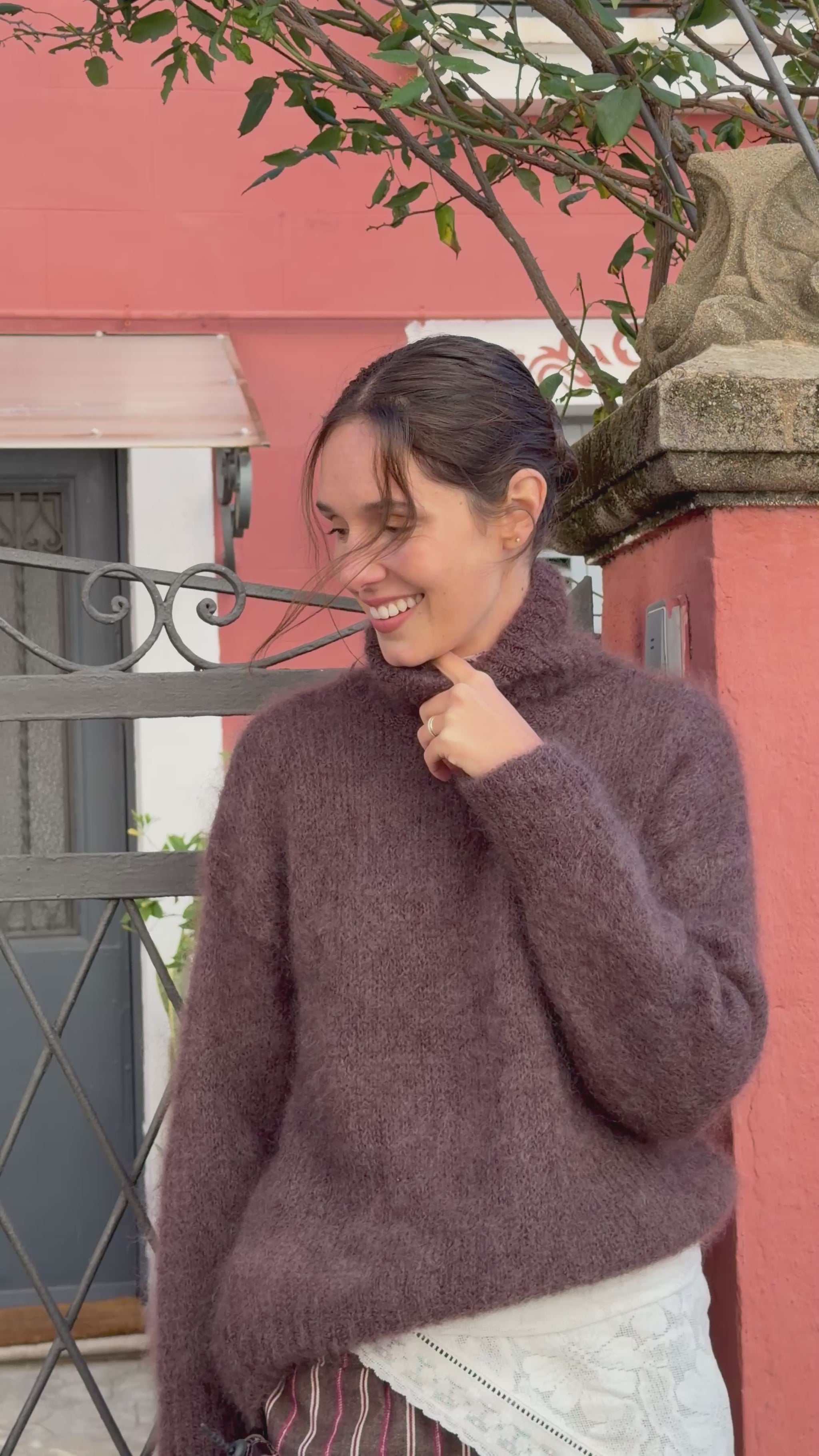 Cuello alto, manga larga. Manga y bajo canalados. Color chocolate. Perfecto para crear capas con camisas y tops para looks sofisticados, y completar con pantalones, faldas. Ponte unas bailarinas o botas para comodidad durante todo el día.