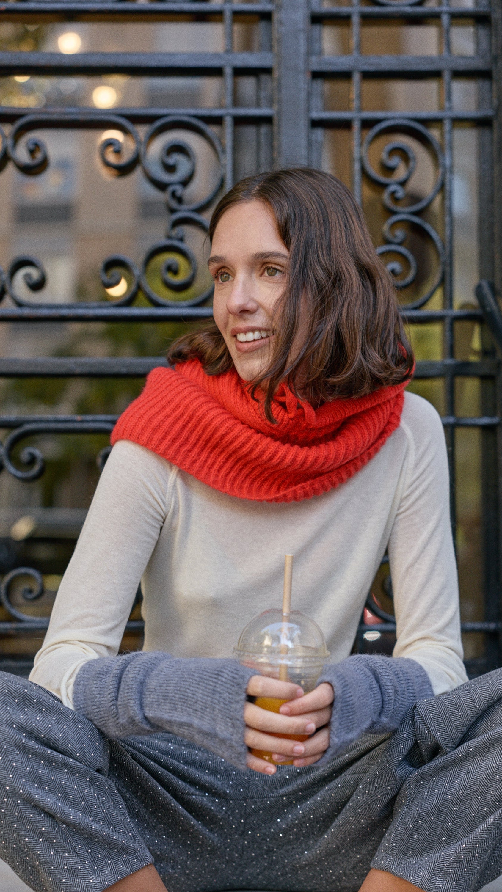 La camiseta tiene mangas largas y está hecha de una suave mezcla de lana y viscosa. Amalie tiene un escote barco y un ajuste ceñido.
