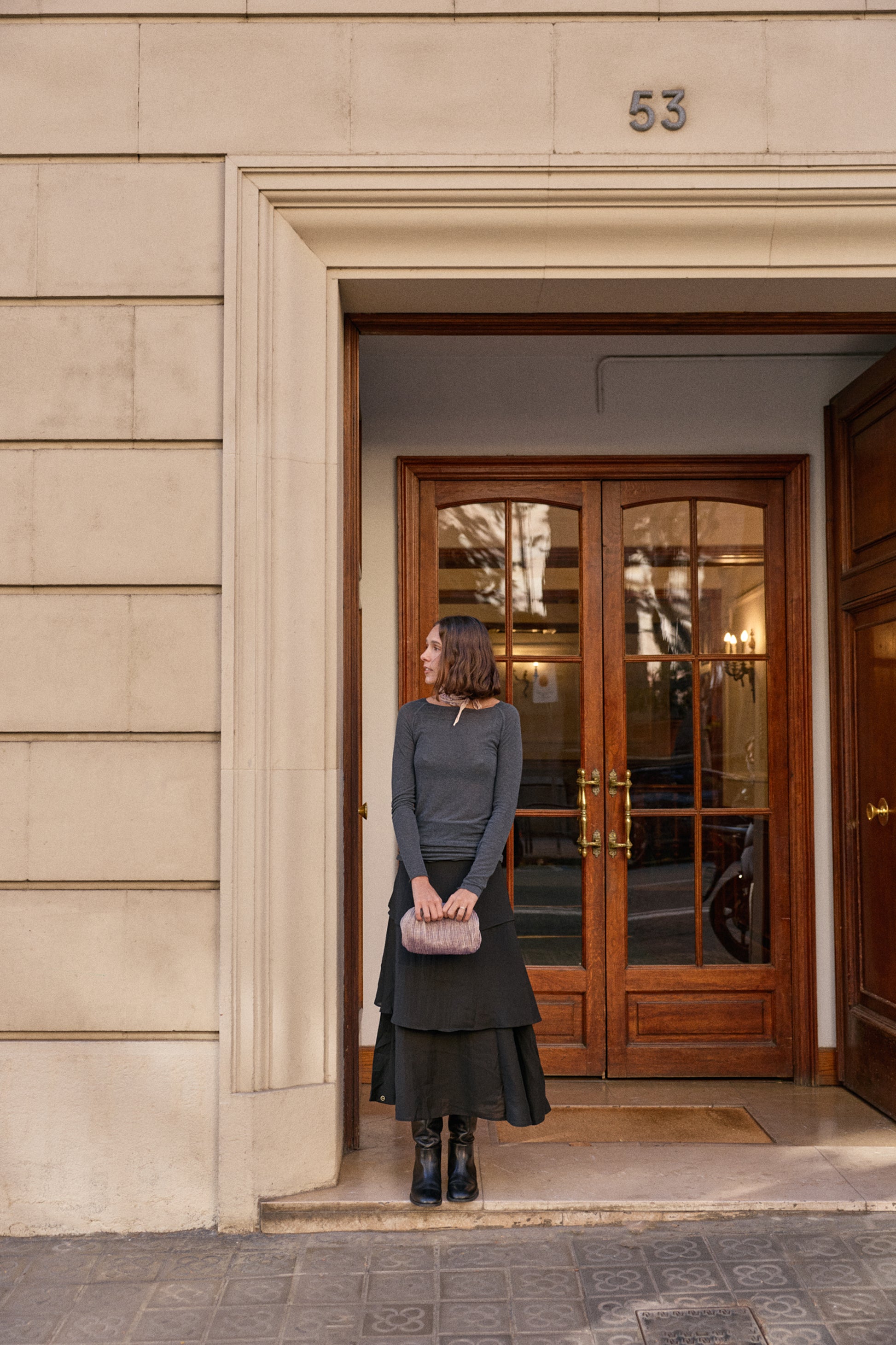 La camiseta tiene mangas largas y está hecha de una suave mezcla de lana y viscosa. Amalie tiene un escote barco y un ajuste ceñido.